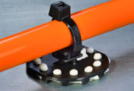 La solution HellermannTyton consiste en une pièce monobloc intégralement plastique avec un emplacement dédié au passage du collier. Cette solution simple et rapide vient se coller au support à l'aide d'un adhésif liquide.