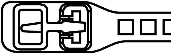 - Possibilité de bouclage de l'excès de bande dans la tête pour une réutilisation ultérieure du collier sur toute sa longueur, plutôt que de le couper
